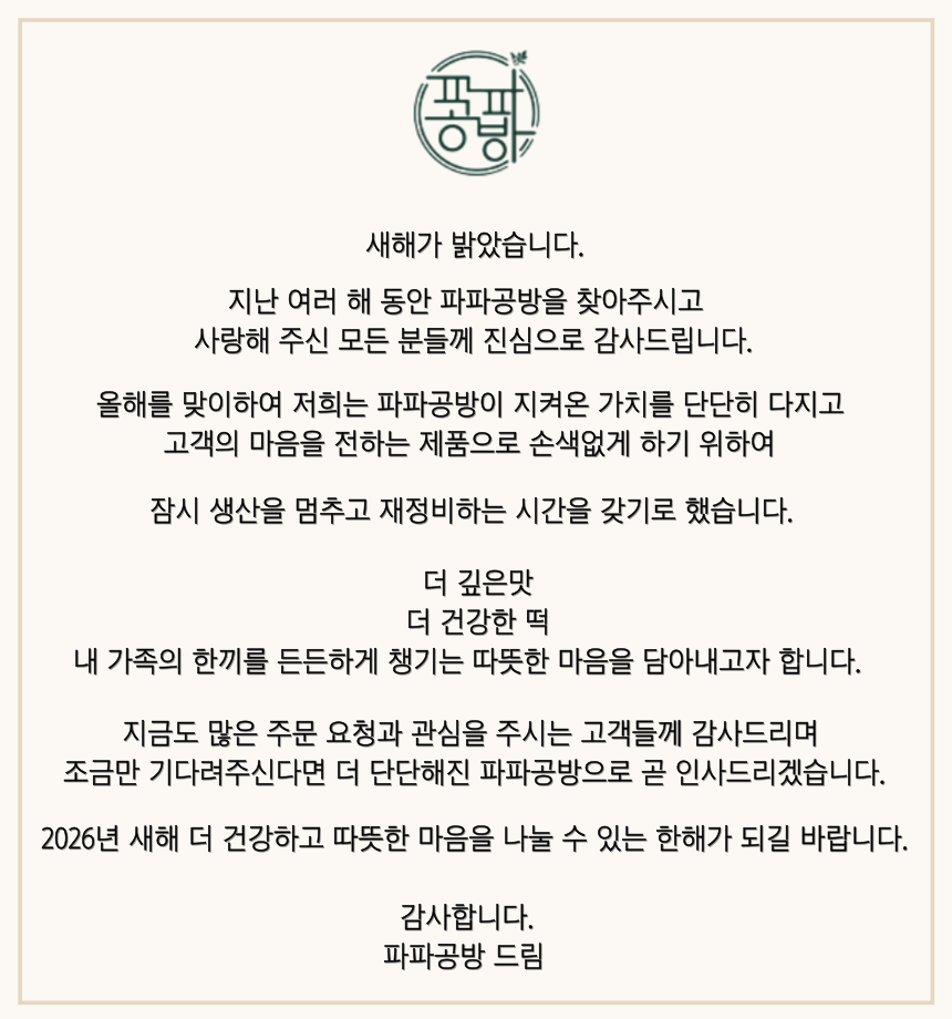 건강하고 간편한 파파공방의 떡으로 전해보세요